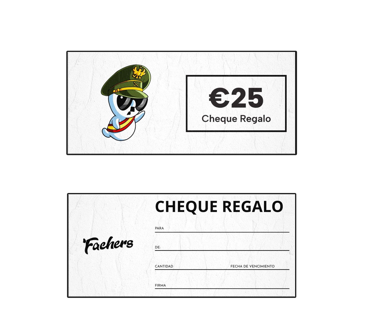 Regala identidad y orgullo con los Cheques Regalo Fachers. Desde 10€ hasta 200€, ideales para sorprender en cualquier ocasión. ¡Porque defender tus valores también se puede regalar!